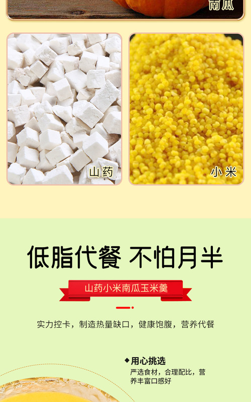 - 主要營養成分:玉米、小米、南瓜、山藥