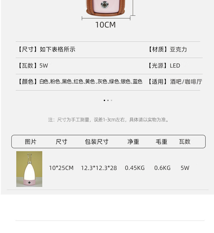 - Lamp holder material: acrylic