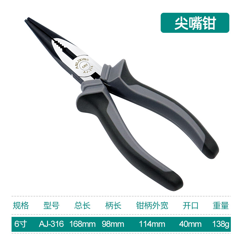 - Model: 6-inch industrial grade needle nose pliers (AJ-316)