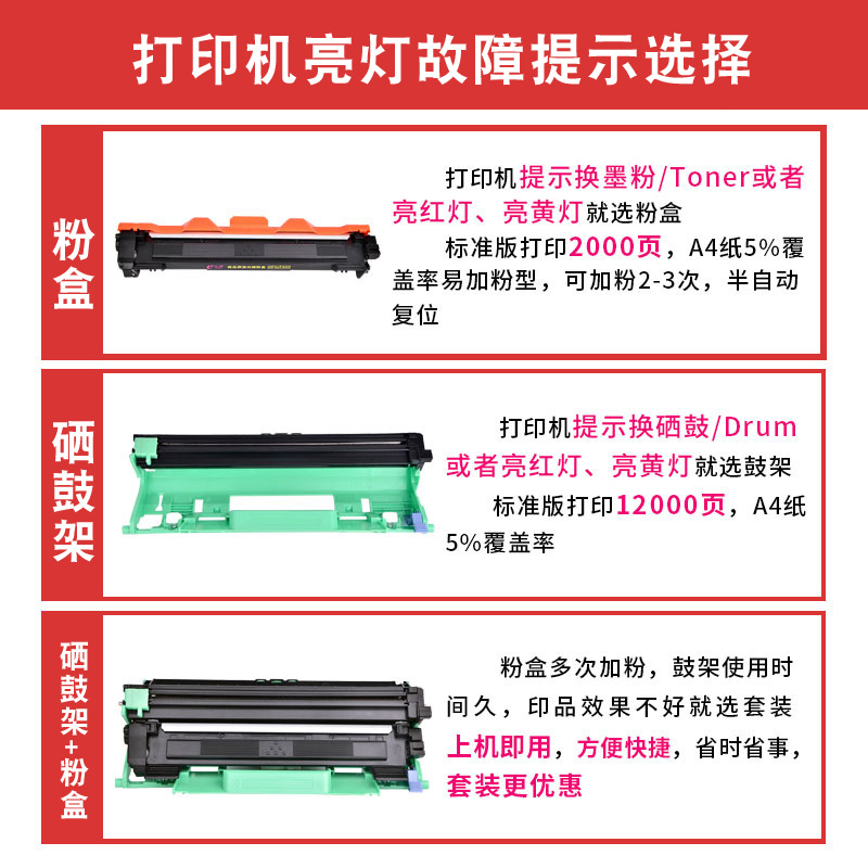 - Number of printed pages: 1,500 pages for powder cartridge, 12,000 pages for drum stand