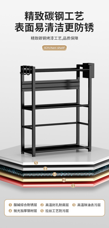 - Specification: [Black] 3 Layers 50cm + Knife Stand + Knife Block + Free 5 Hooks [513]