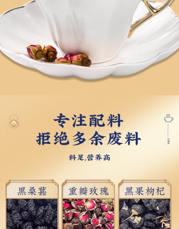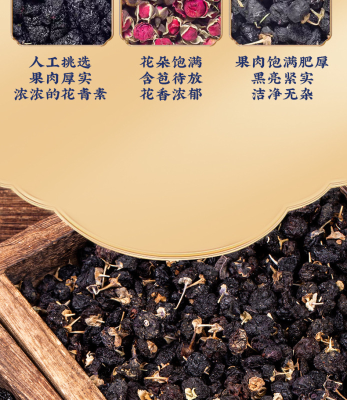 - Raw materials and ingredients: black wolfberry, mulberry, double red rose
