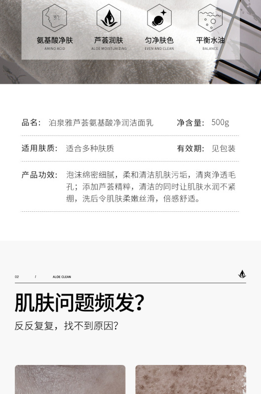 - 產品系列:泊泉雅蘆薈氨基酸淨顏潔面乳系列