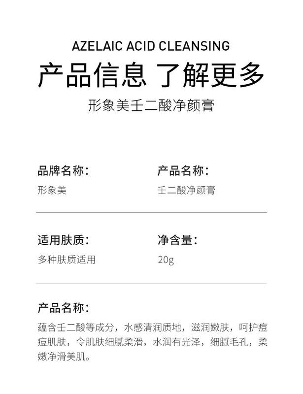 - Product specifications: Azelaic acid cleansing cream 20g