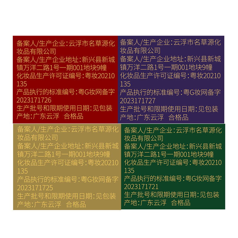 - Non-special cosmetics registration certificate number: Guangdong G makeup network registration number 2018171721