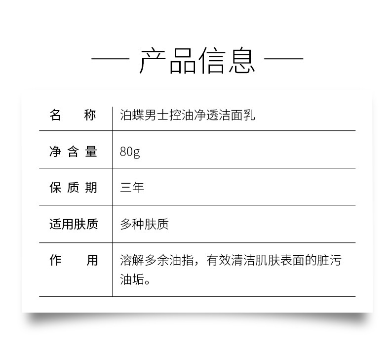 - Product Specifications: Bodie Men's Oil Control Cleansing Milk 80g