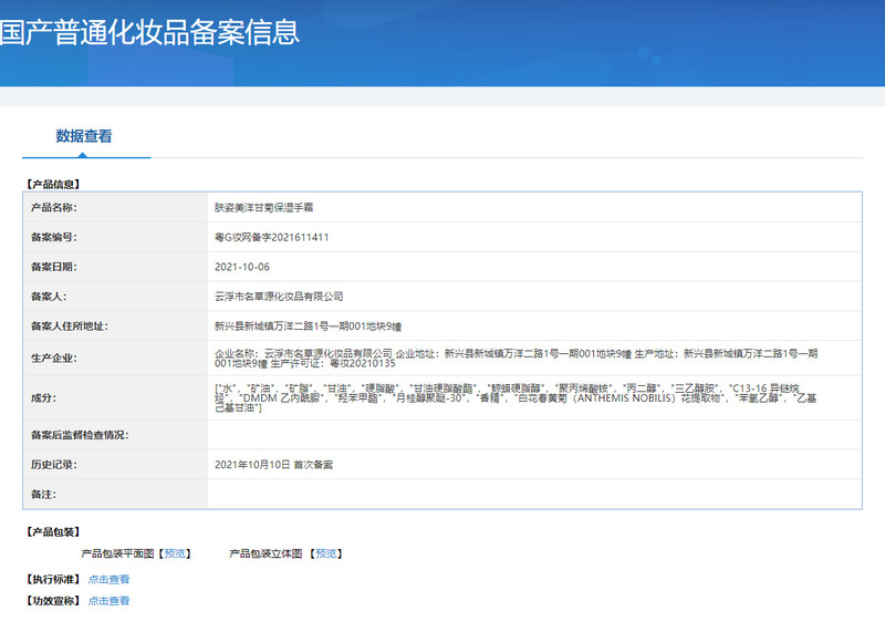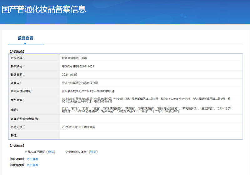 - Non-special cosmetics registration certificate number: Guangdong G makeup network registration number 2016117073