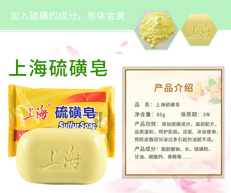 - 淨含量:85g上海硫磺皂(黃色).