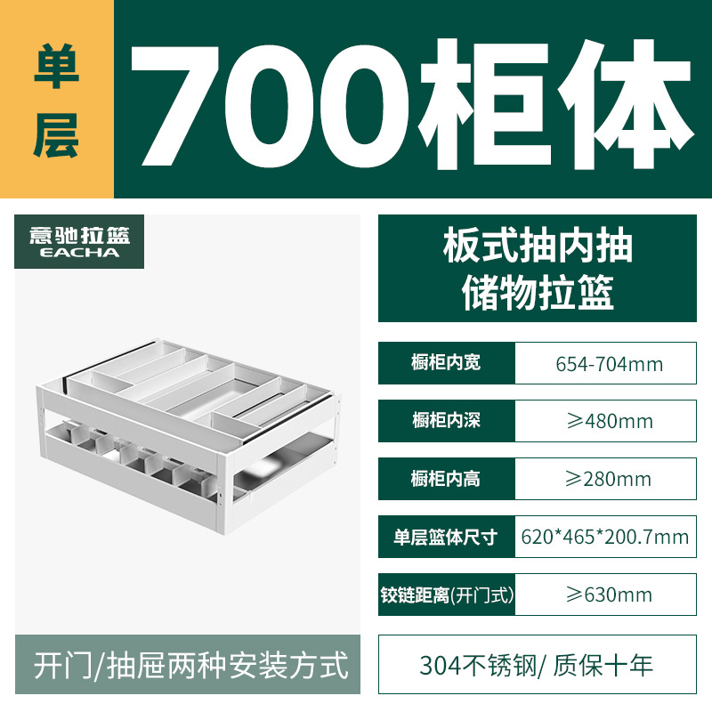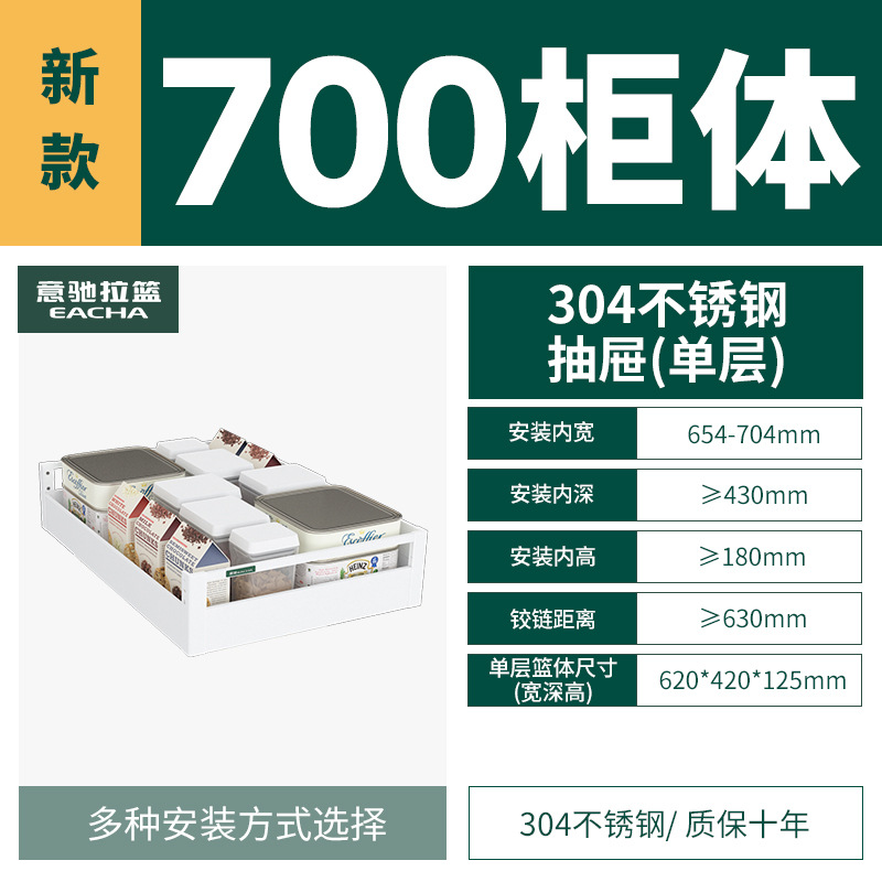 - Specifications: [Single layer] 700 specifications - 304 plate type pull-out storage basket