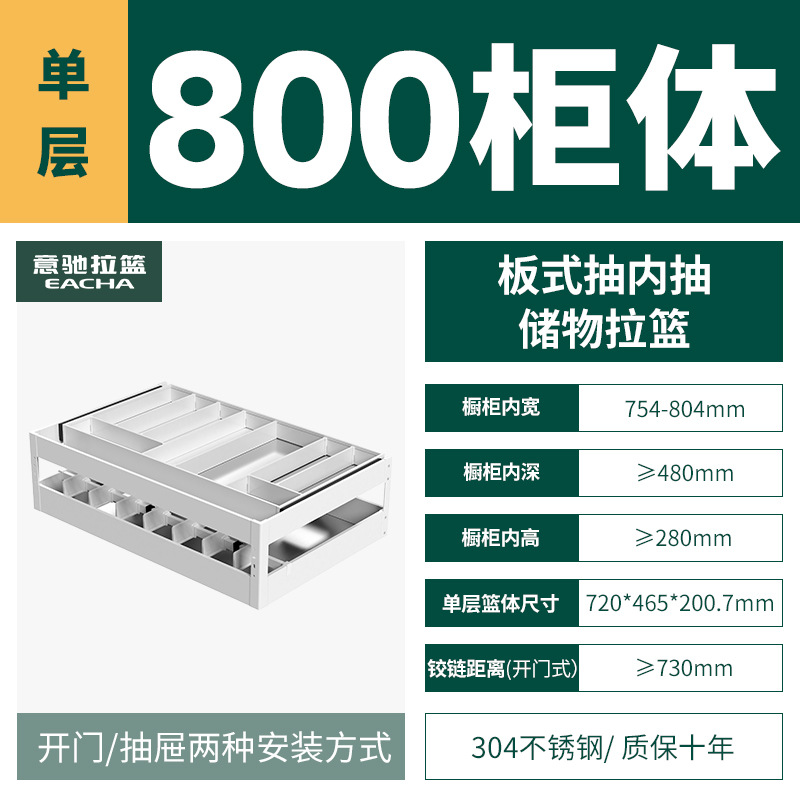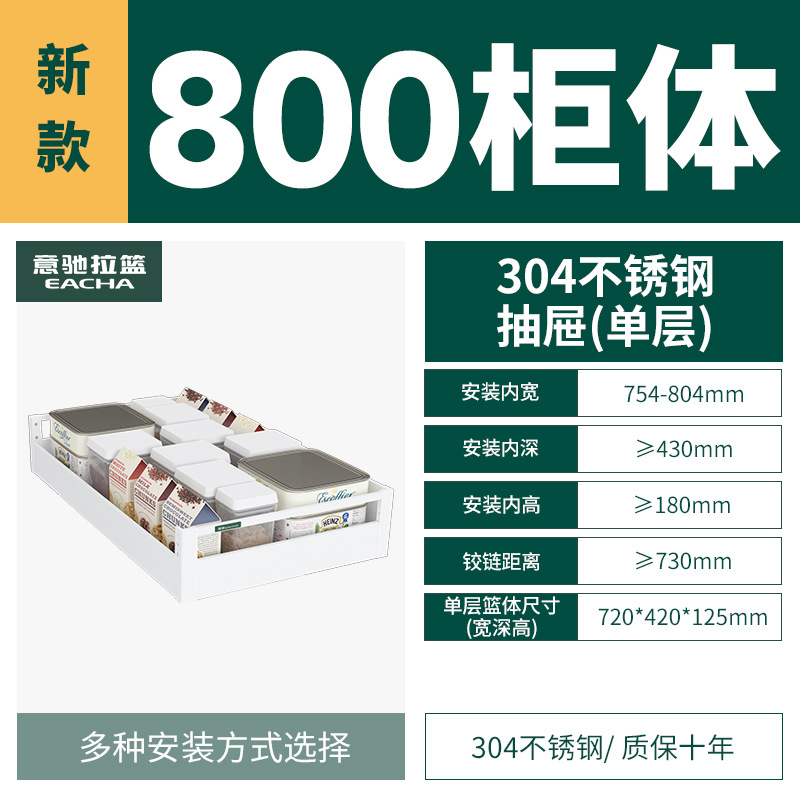 - Specifications: [Single layer] 800 specifications-304 plate type pull-out storage basket