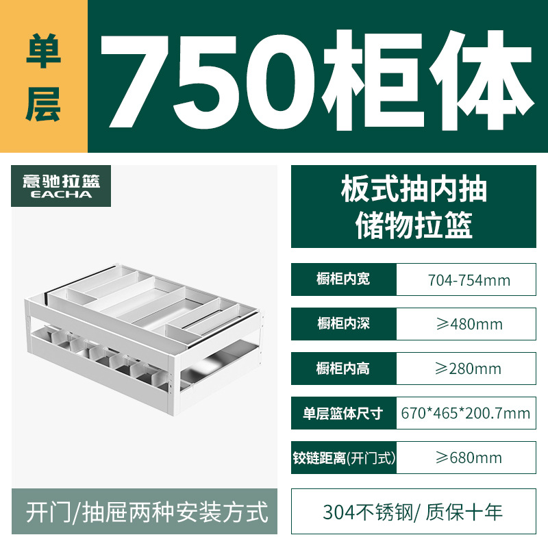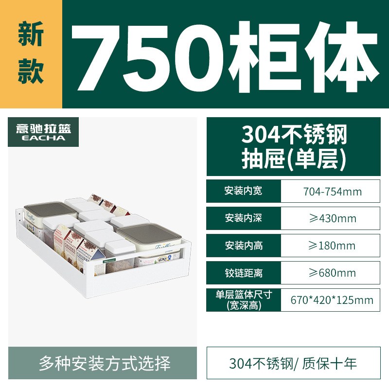 - Specifications: [Single layer] 750 specifications-304 plate type pull-out storage basket