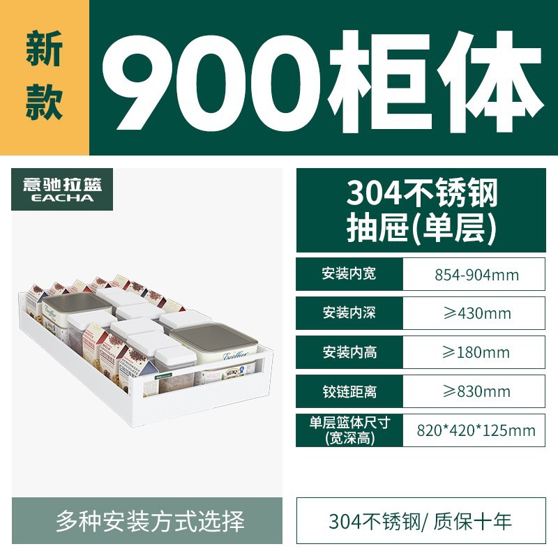 - Specifications: [Single Layer] Medium Drawing 900 Specifications - 304 Stainless Steel Drawer Basket 3rd Generation