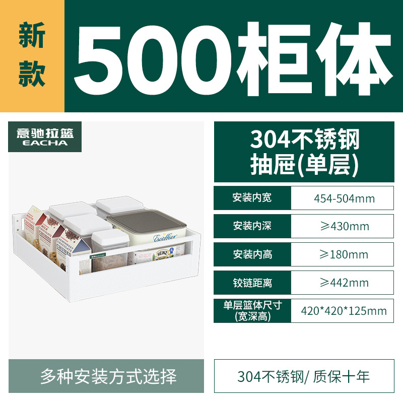 - Specifications: [Single layer] 500 specifications-304 plate type pull-out storage basket