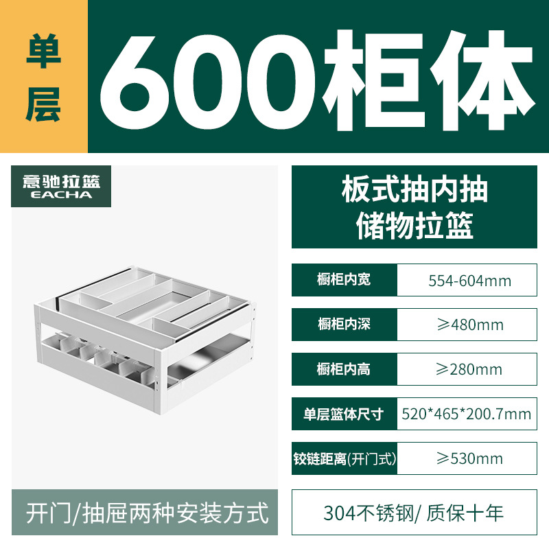 - Specifications: [Single layer] 600 specifications - 304 plate type pull-out storage basket