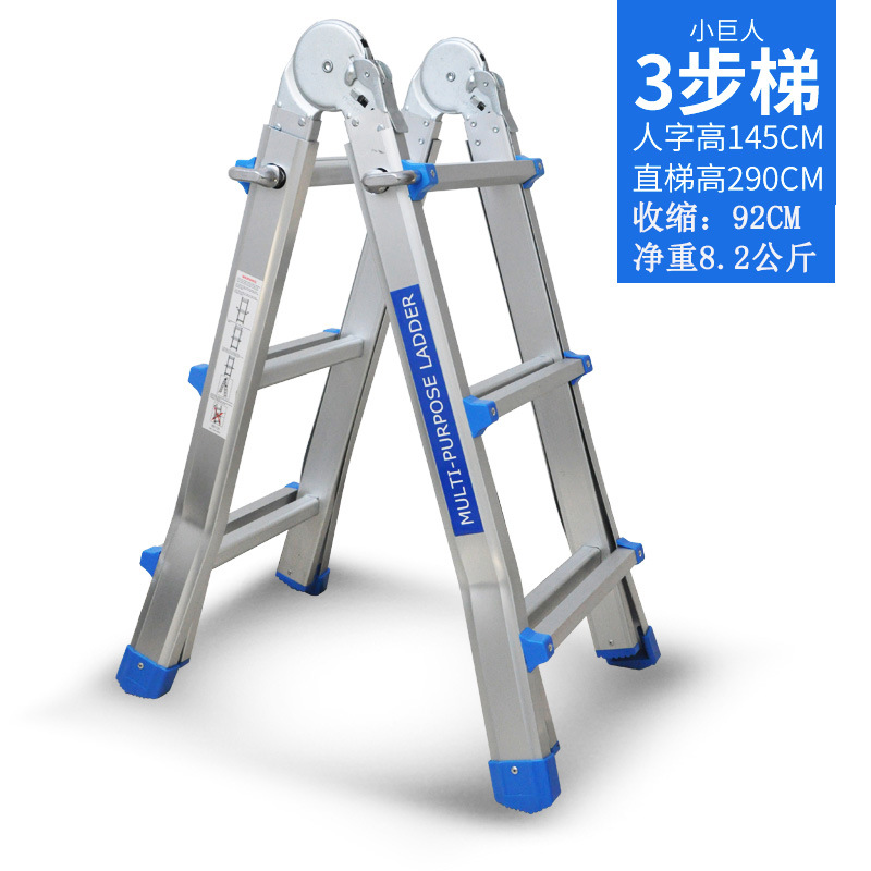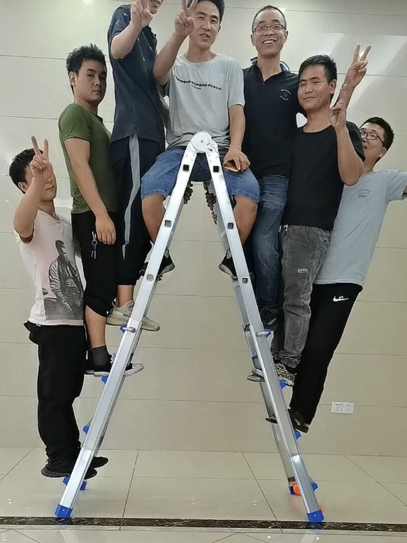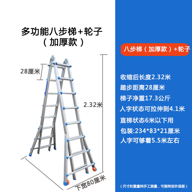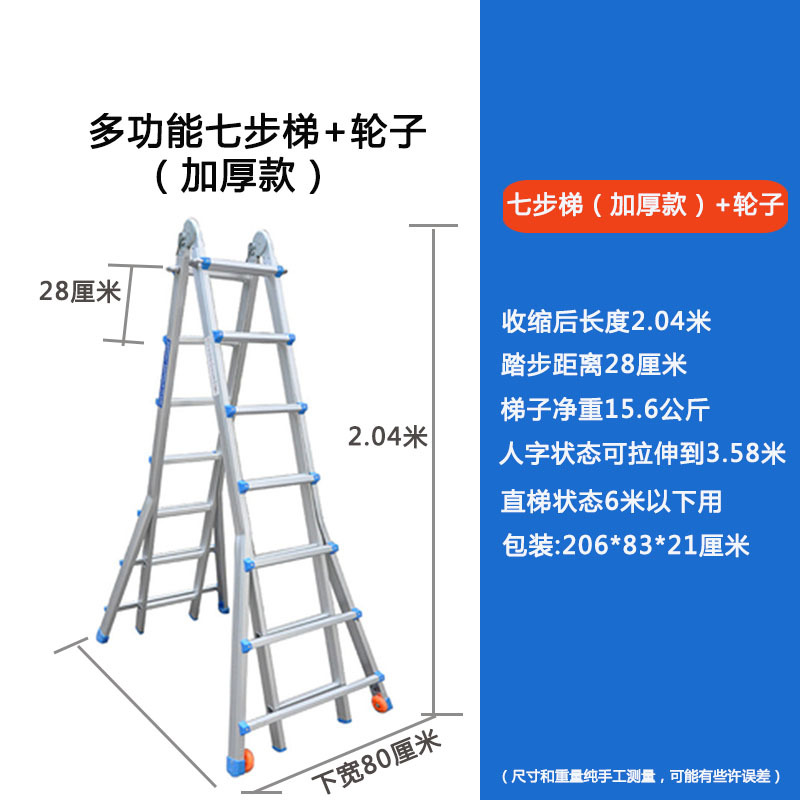 - Number of Steps: Thickened 7 steps = Straight Ladder 7.4 meters = A-Frame 3.6 meters + Wheels