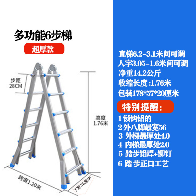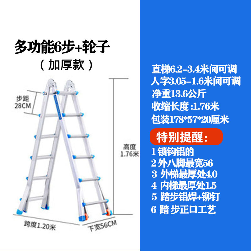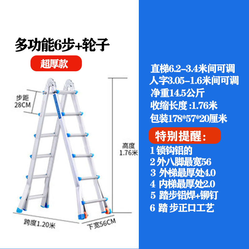 - Number of Steps: Ultra-thick 6 steps = Straight Ladder 6.2 meters = A-Frame 3.1 meters + Wheels