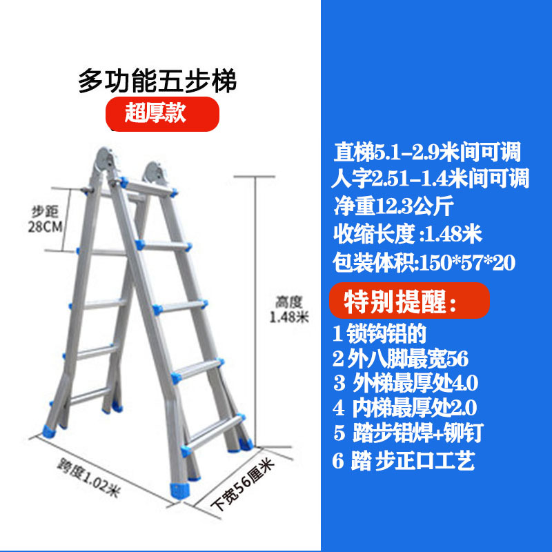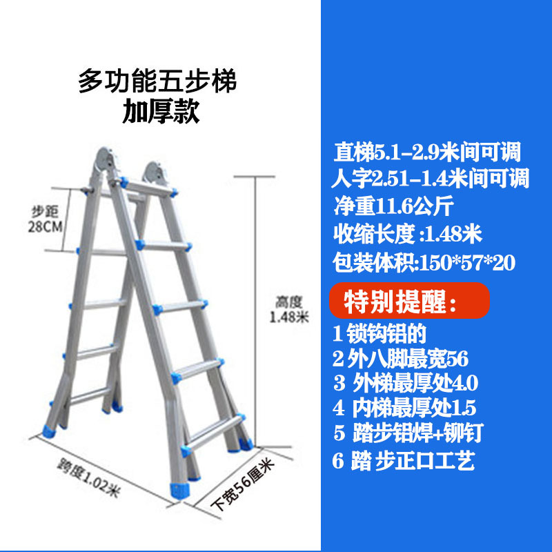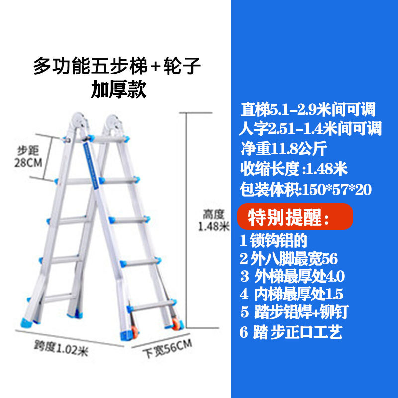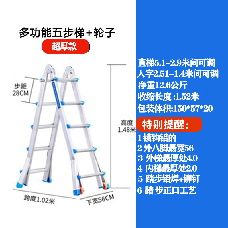 - Number of Steps: Ultra-thick 5 steps = Straight Ladder 5.1 meters = A-Frame 2.5 meters + Wheels