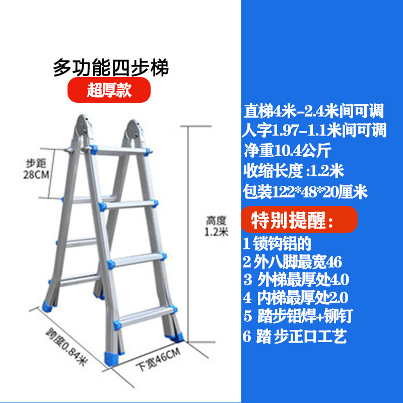 - Number of Steps: Ultra-thick 4 steps = Straight Ladder 4.0 meters = A-Frame 1.9 meters + Wheels
