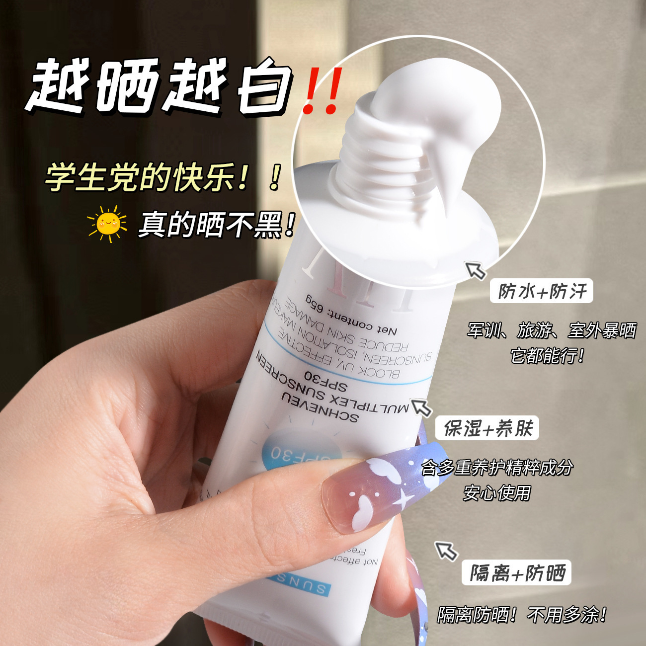 - Sun protection index: SPF30