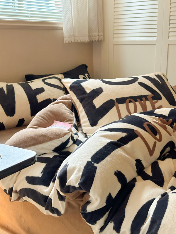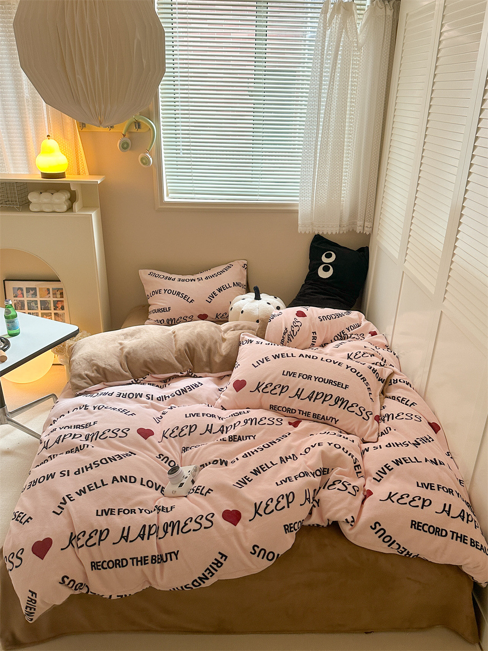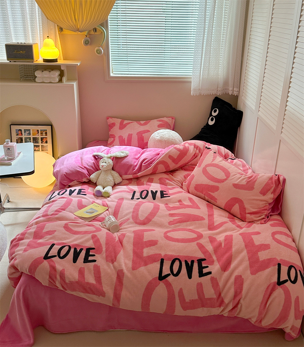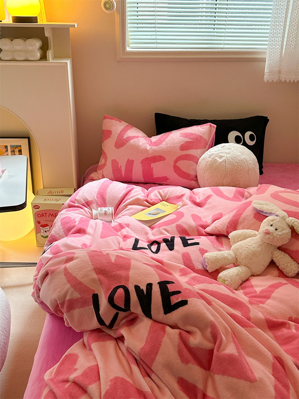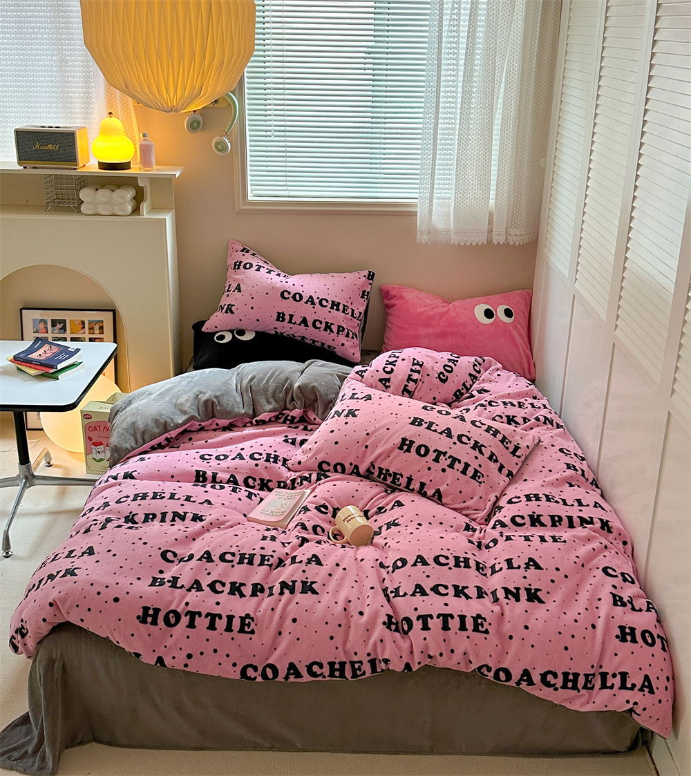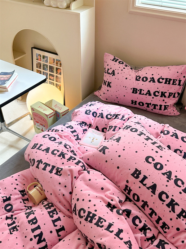 - 花型:牛奶絨-快樂字母-粉