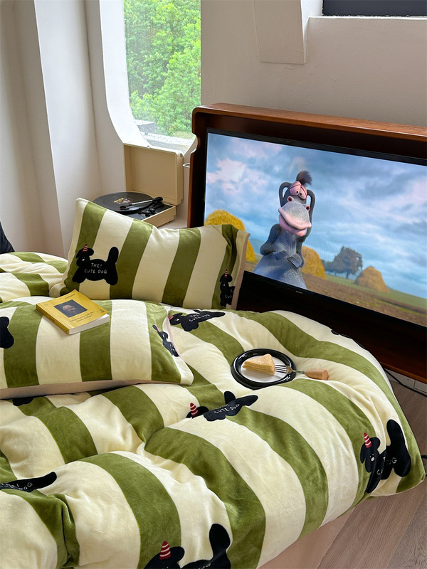 - 花型:牛奶絨-禮物狗-綠