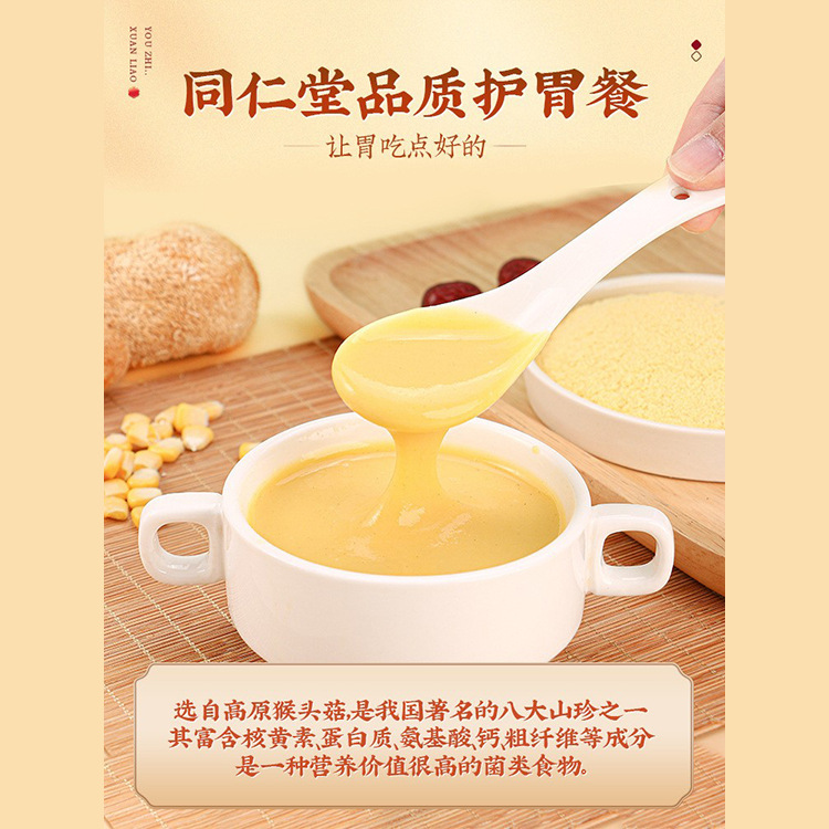 - Main nutrients: wheat flour, Hericium, Poria, japonica rice, oats, soybeans, coix seed, lotus seeds, yam, lentils, platycodon, amomum villosum