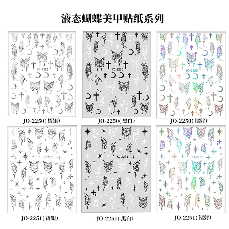 - 形狀:蝴蝶貼紙鐳射蝴蝶蝶紙十字貼紙美甲液態蝴蝶貼紙鏤空蝴蝶貼紙美甲蝴蝶飾品美甲星芒貼紙五彩