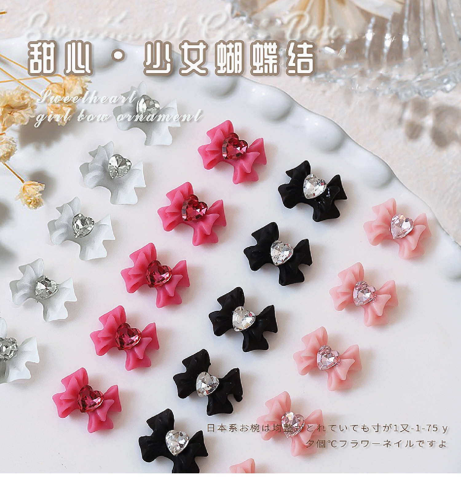 - 用途:美甲樹脂蝴蝶結桃心蝴蝶結美甲飾品跨境電商採購下游熱銷
