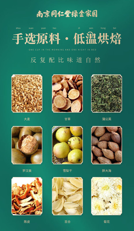 - Raw materials and ingredients: barley, licorice, dandelion, Luo Han Guo, dried snow pear, pomelo, tangerine peel, lily, chrysanthemum