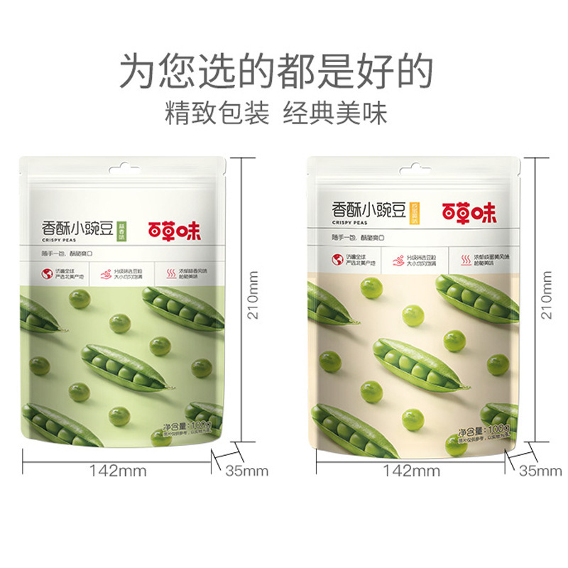 - Packaging Specification: Baicaowei Garlic Flavor Small Green Peas 100g
