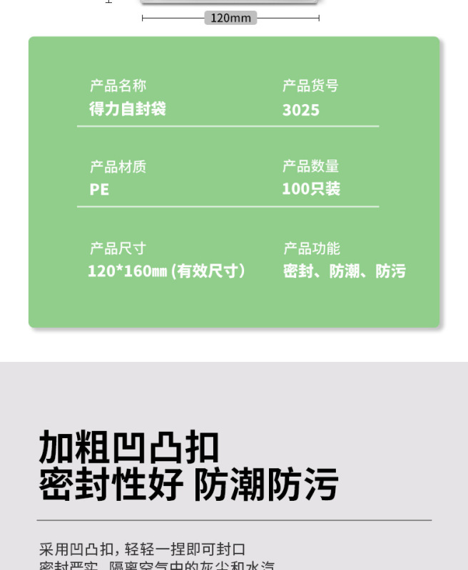 - Material: 6-inch self-sealing bag