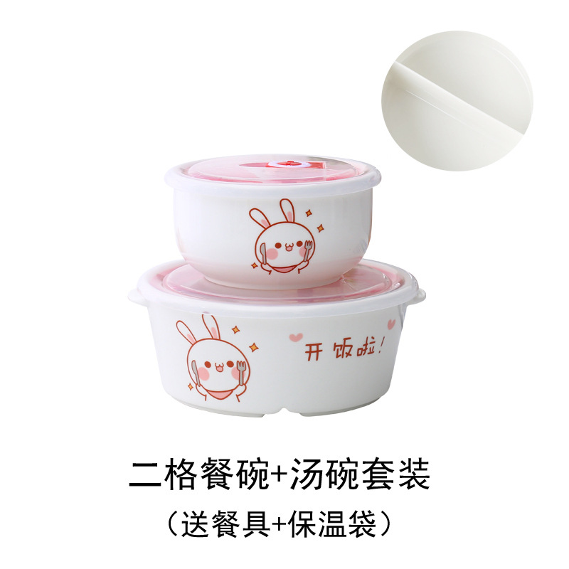 - 規格:小兔二格碗配湯碗套裝送餐具袋子
