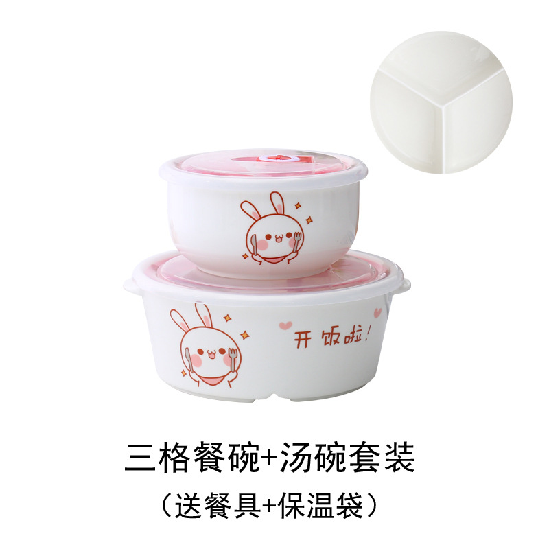 - 規格:小兔三格碗配湯碗套裝送餐具袋子