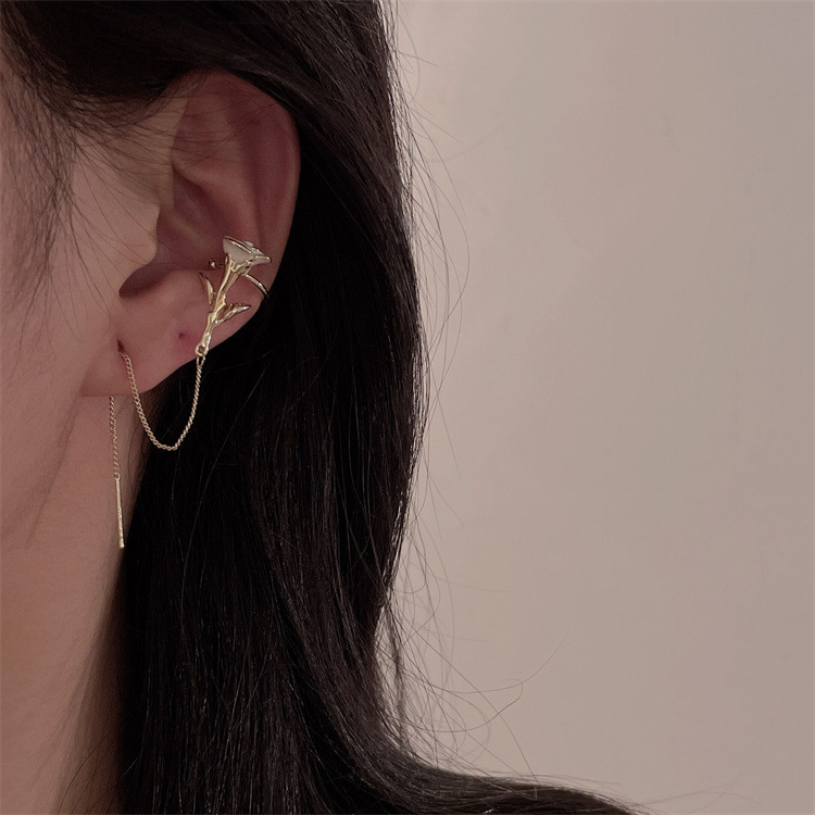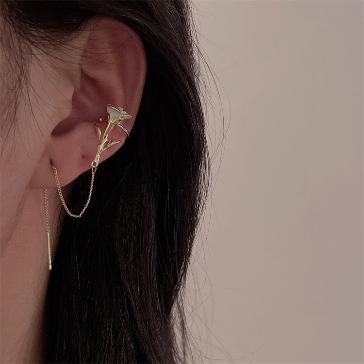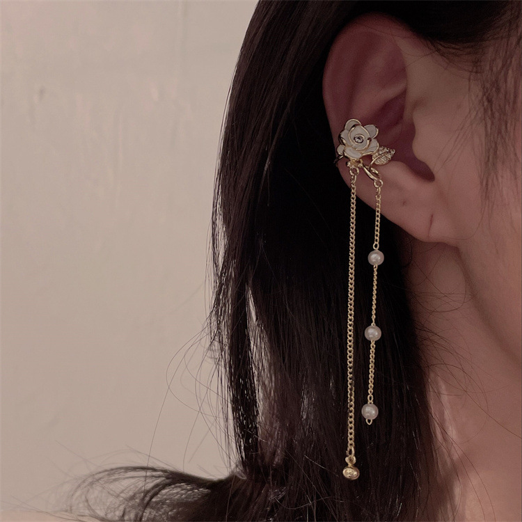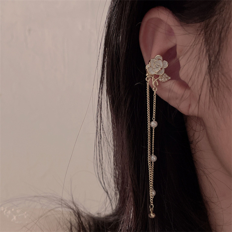 - 樣式:長款流蘇花朵耳夾