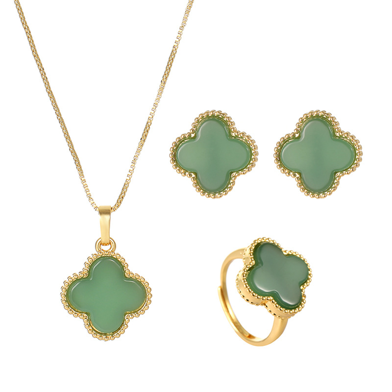 - Zhongxing Finished Jewelry: Four-leaf Clover Jadeite-like Accessory Set