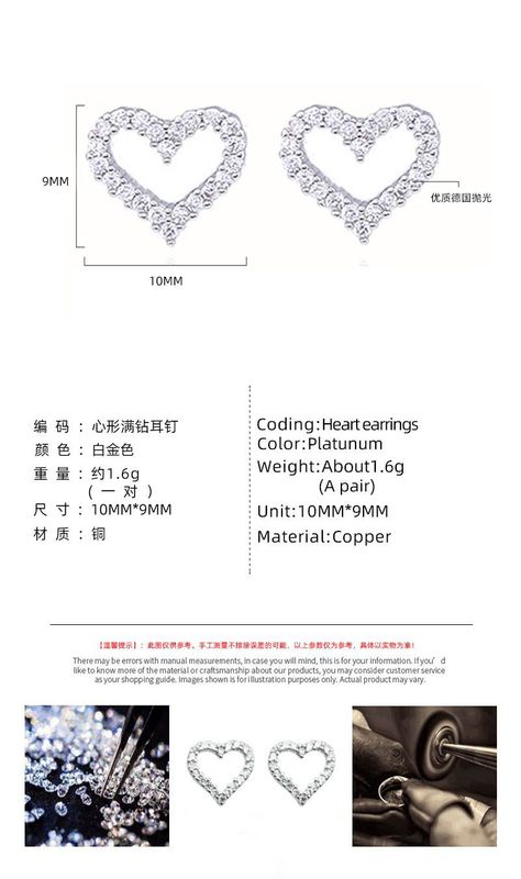 - 銷售序列號:心形滿鑽耳釘
