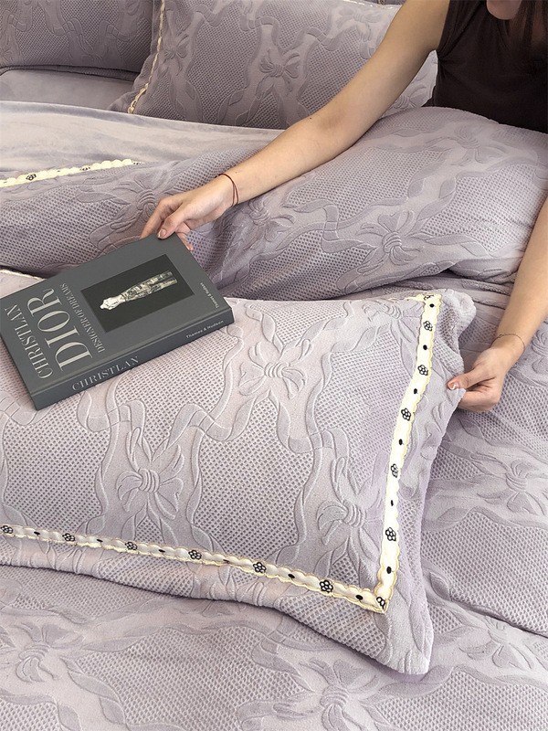 - 花型:牛奶絨-公主蝴蝶結-淺紫灰