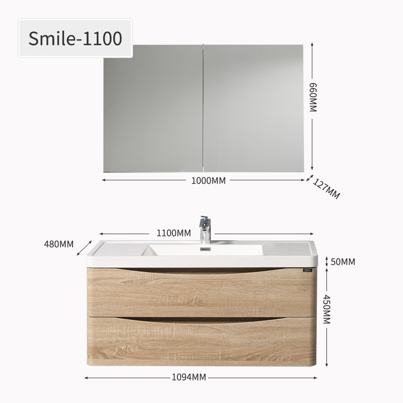 - Specifications: 1100mm basin cabinet + 1000mm aluminum mirror cabinet