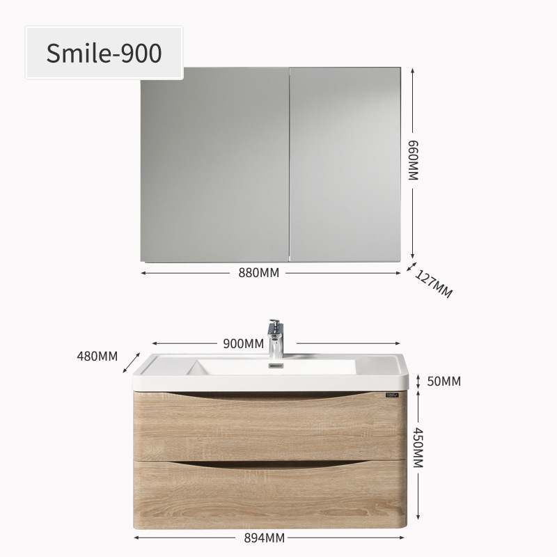 - Specifications: 900mm basin cabinet + 880mm aluminum mirror cabinet