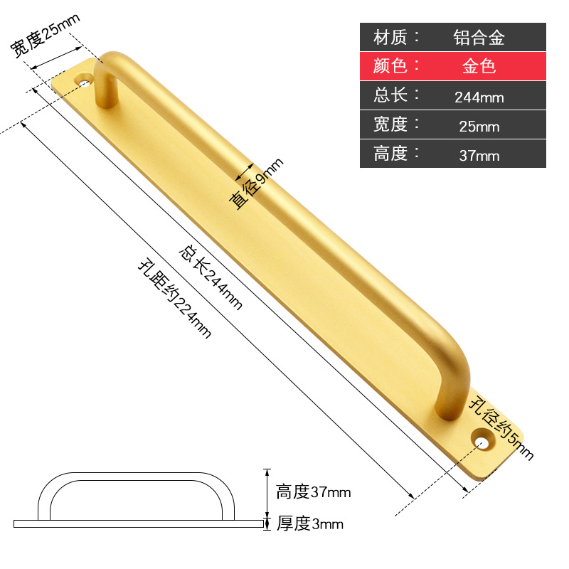 - Specification: Screw-free Aluminum Alloy Wide Plate Handle (Gold)