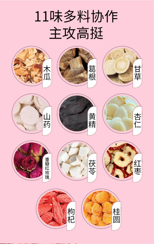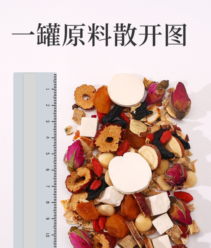 - Ingredients and Materials: Papaya,葛根,Longan,Almond,Rose,Goji Berry, etc.