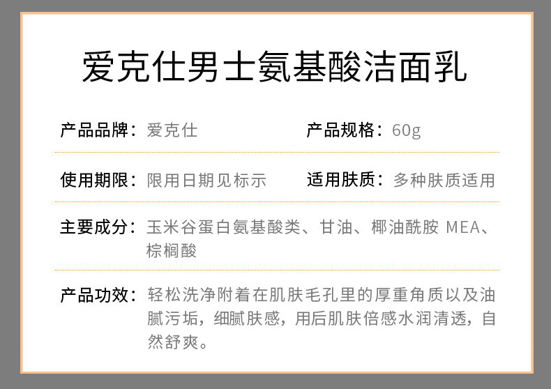 - Product Specification: Akeso Amino Acid Men's Cleanser 60g/ea