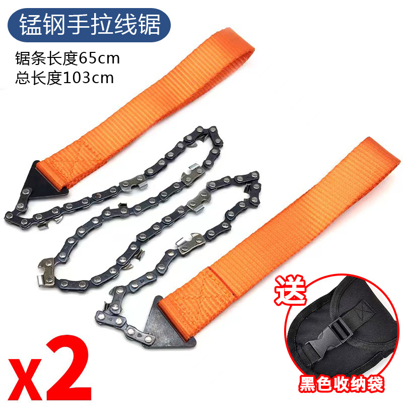 - Specifications: Manganese steel chain saw (orange 2 pieces) comes with sodium bag