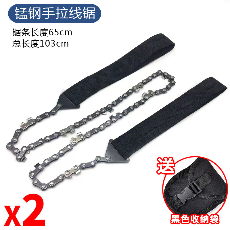 - Specifications: Manganese steel chain saw (black 2 pieces) comes with sodium bag