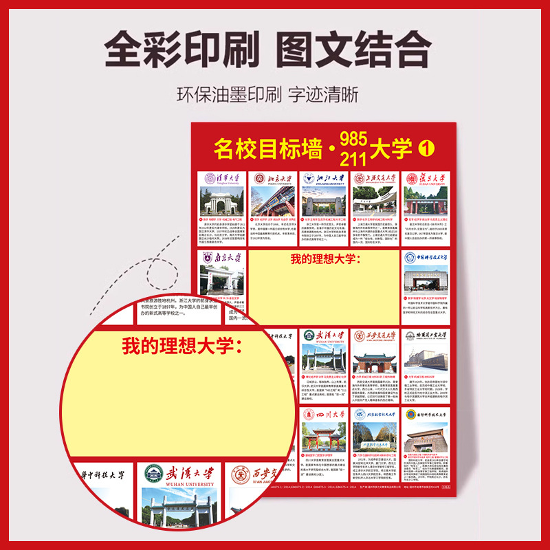 - 規格:名校目標牆全套6張/包