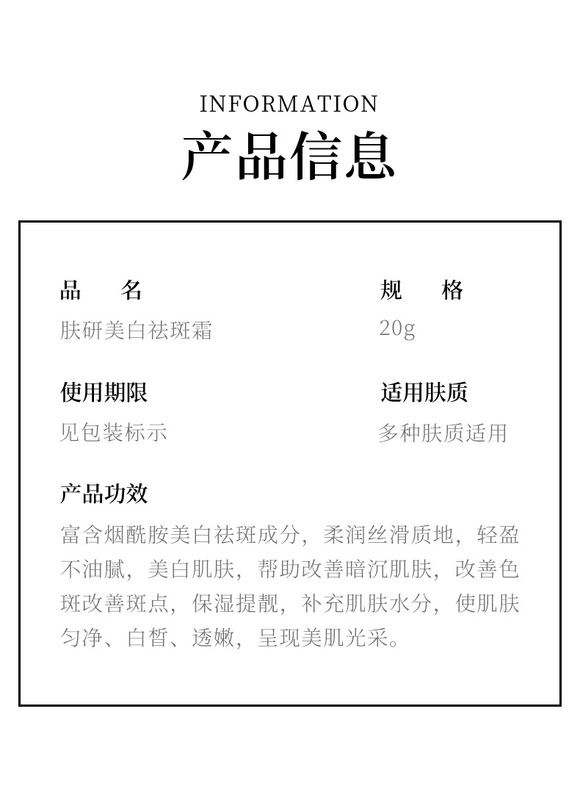 - Product Specification: Fu Yan Whitening and Spot Removing Cream / 20g