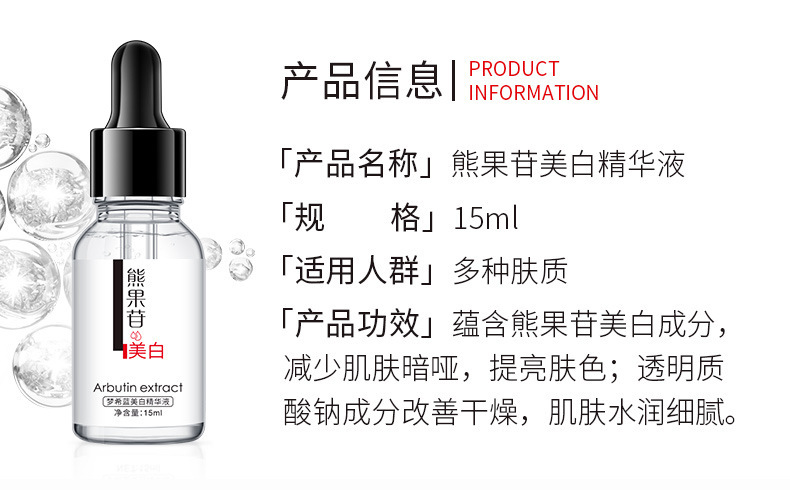 - 產品規格:15ml熊果苷精華液