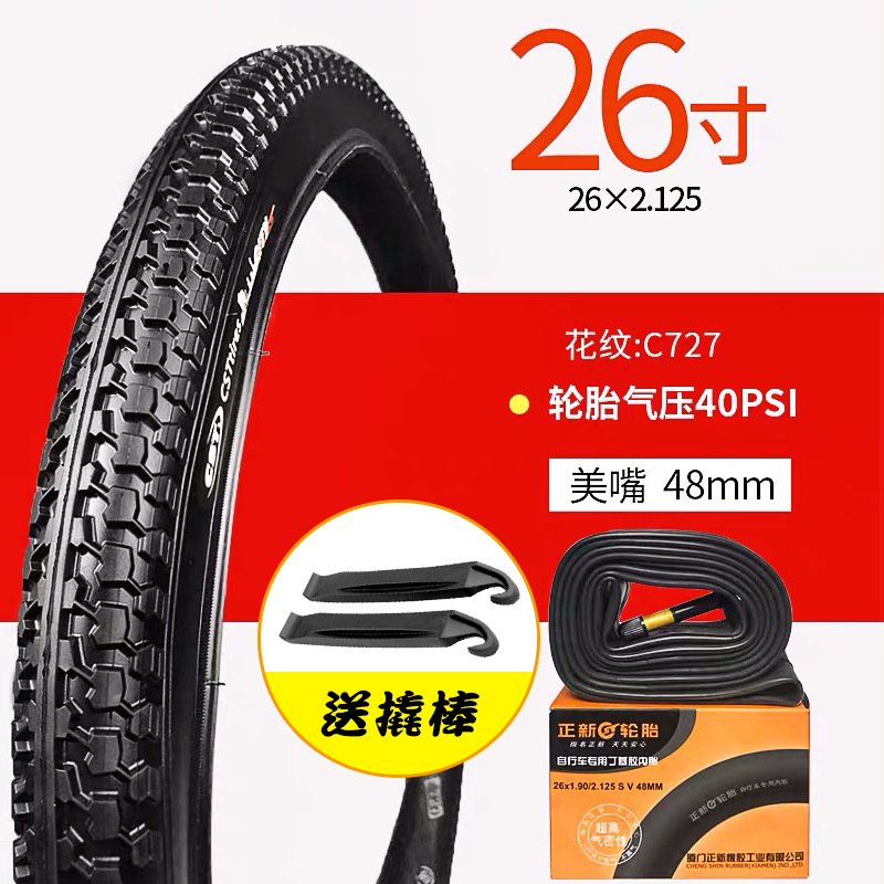 - Specifications: 26x2.125 Zhengxin inside and outside 1 set C727 pattern