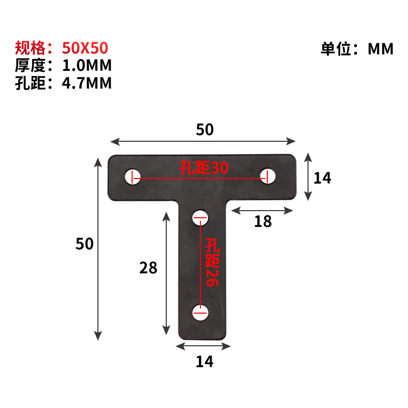 - 規格:黑色T型角碼-50