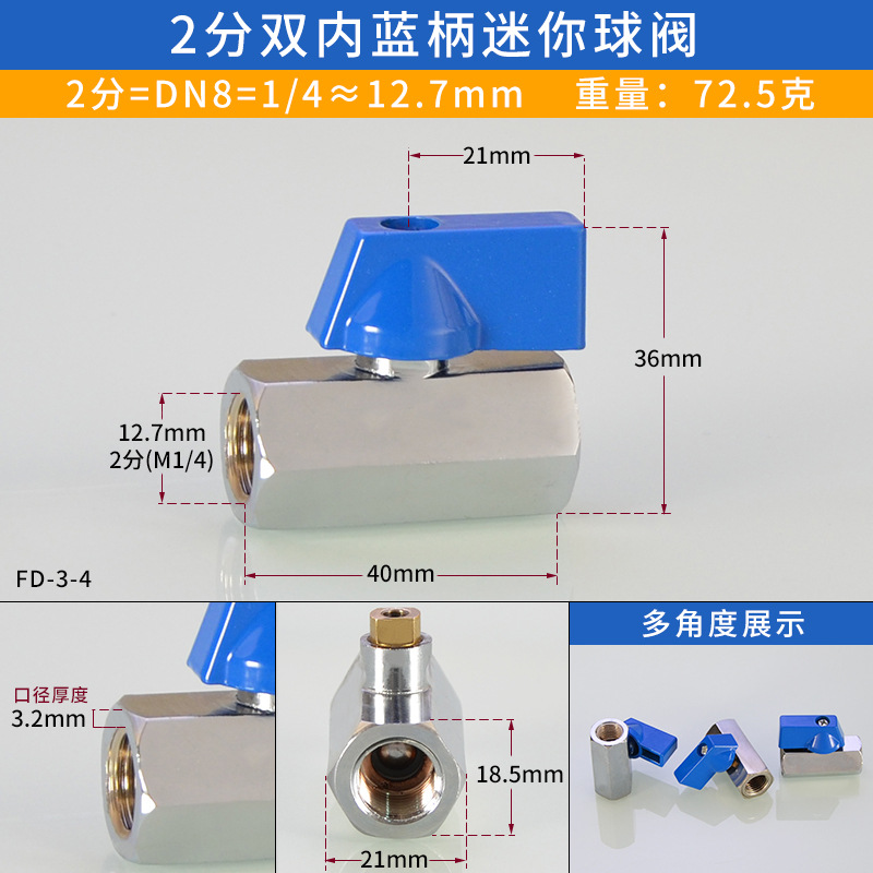 - 規格:藍柄球閥拋光雙內3分